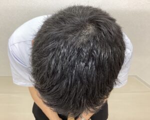 治療9ヵ月目では更に密度が上がり、頭頂部から前頭部にかけての透け感が目立ちにくくなってきました。