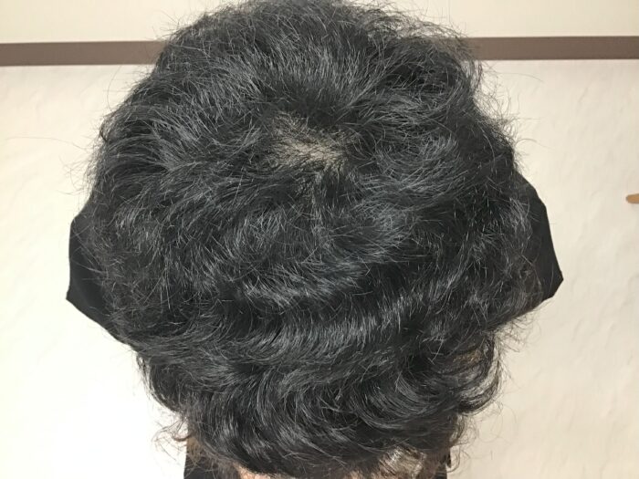 頭頂部のつむじ周りや生え際・前頭部付近の頭皮透け感が目立ちにくくなっています。