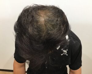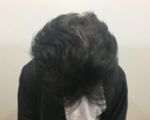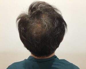 気にされている分け目と頭頂部は地肌が見えており、髪が軟毛でボリュームがない状態で、頭頂部の毛を太くしたいとのことで下記の内容で治療を開始しました。