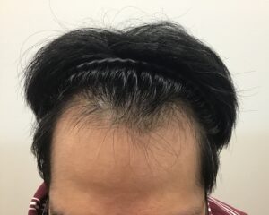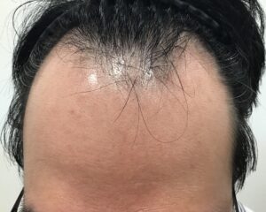 ご自身での処置は特にされておらず、生え際の後退が深い状態です。