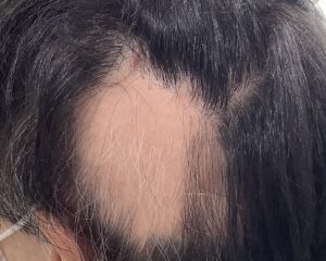 ご来院の3ヶ月前に頭頂部に500円玉大の円形脱毛1カ所美容師さんより指摘を受け皮膚科受診するも、