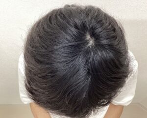治療開始6ヵ月目に生え際・頭頂部ともに更に毛質がしっかりし密度が上がってきたことで、