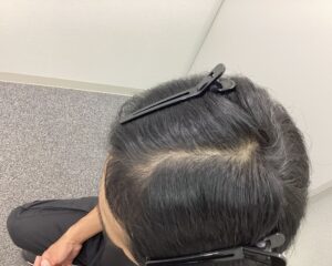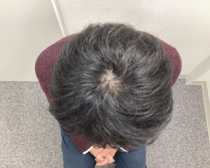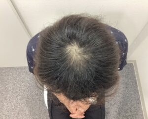 同じように「分け目が気になる」「前から見ると薄く見える」と感じて来院される方が多い状態です。