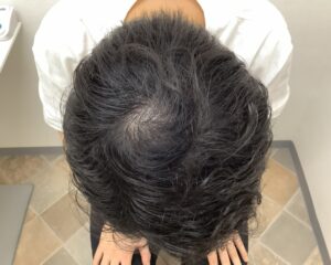 この患者様は1年前から美容師とご家族の方から頭頂部の薄毛を指摘されるようになり『駅前AGAクリニック広島院』を受診されました。