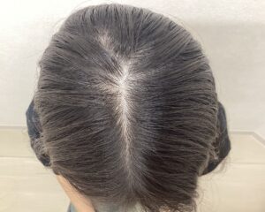 元々毛量が多い方ではないとのことですが、抜け毛が増えてから全体の毛量が減り、地肌の透け感が見受けられました。