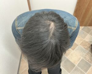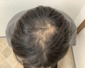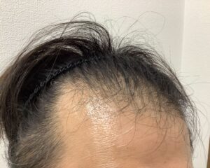 鏡を見るたびに生え際と頭頂部の薄毛が気になり、約2年前より市販の外用薬を使用されていました。