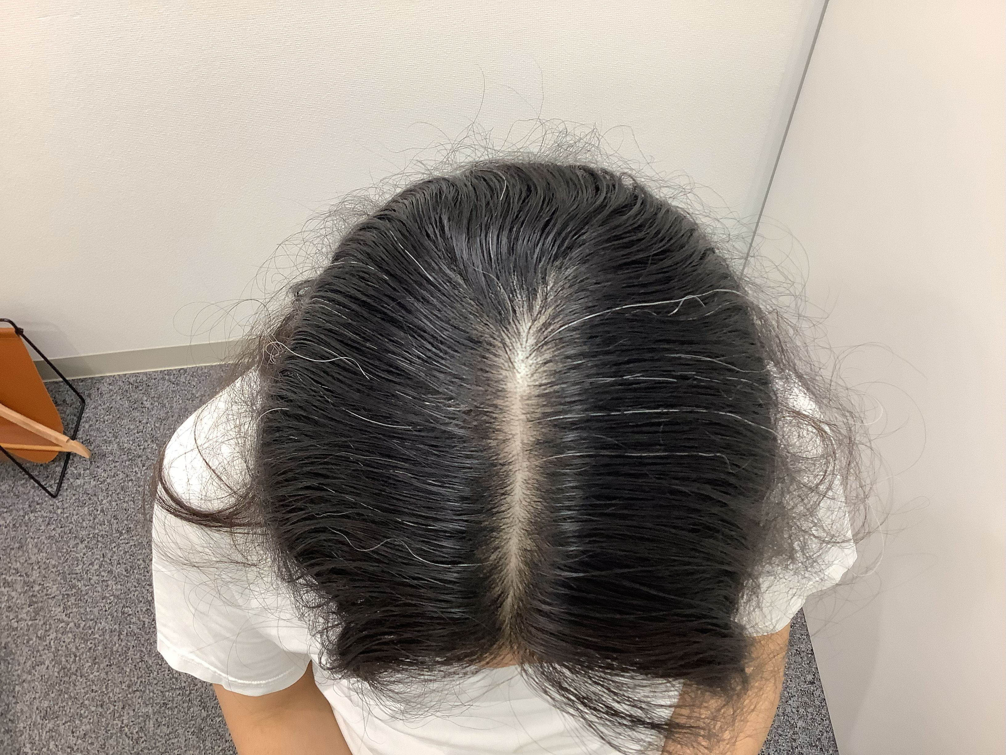 初診時所見(多発型 円形脱毛症+AGA H-N分類Ⅱ型) ご来院の3ヶ月前に頭頂部に500円玉大の円形脱毛1カ所美容師さんより指摘を受け皮膚科受診するも、 円形脱毛部分の触診や確認等も無く外用薬処方され、不信感を覚えられたそうです。 初回発見時から3ヶ月という短期間で2個目3個目と円形脱毛が増えてい […]