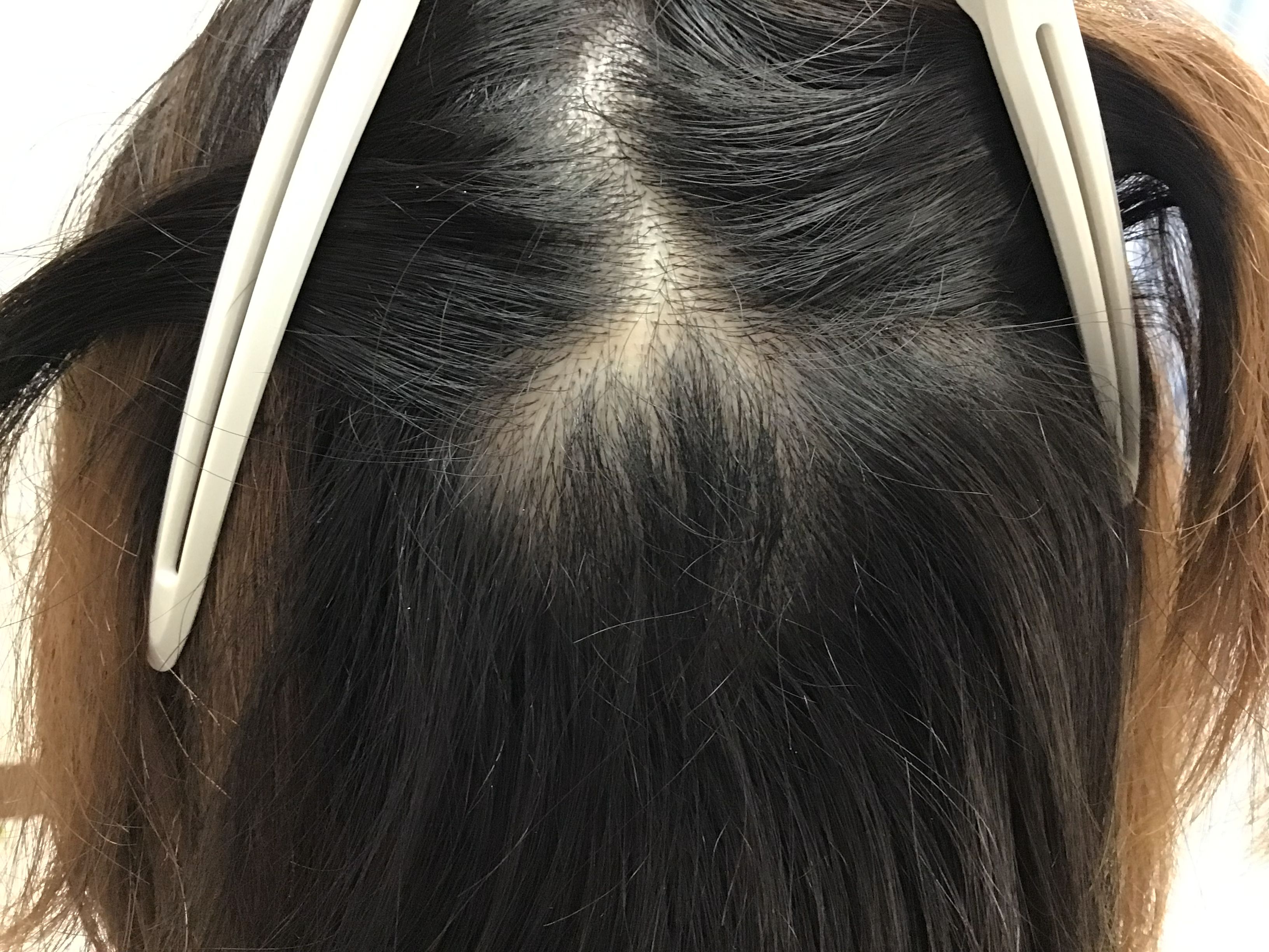 初診時所見(多発融合型円形脱毛症) ご来院の数か月前に単発型から多発へ移行し、更に抜け毛が増えたとのことで「駅前AGAクリニック鹿児島院」へ来院されました。 皮膚科で内服薬・外用薬を処方受けていたようですが、治療の大きな変化はなく、発症から1年経過になる前に早めに治癒したいとのことで当院で治療開始と […]