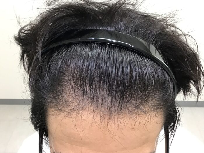 初診時所見(44歳男性 H-N分類Ⅲ型) 昨年から細い抜け毛が目立つようになり、元々毛量もあったとのことですが全体的に軟毛化と地肌の透け感が目立つようになったそうです。 美容室に勧められたシャンプーや育毛剤も使用されていましたが、目立った効果は感じず、「駅前AGAクリニック鹿児島院」にご来院されまし […]
