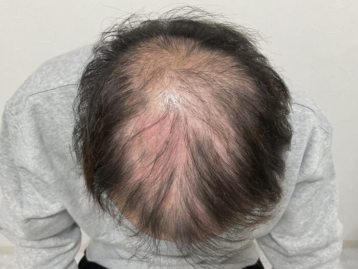 初診時所見(AGA H-N分類 Ⅳ型) 20代から生え際、30代になり頭頂部が気になるようになり、育毛サロンに通うが効果を感じられなかったそうです。 進行を感じ始め不安になったため「駅前AGAクリニック岡山院」へご相談に来られました。 診断では生え際・M字の後退と頭頂部にも軟毛を多くみとめました。 […]